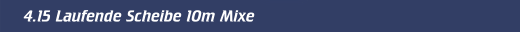 | Klasse | Kennz. | Akt.-Datum | Einzel | Mannsch. | | Schütze | 10 | 08.05.11 | X | X | | Dame | 11 | 08.05.11 | X | | | Schüler, m. | 20 | 08.05.11 | X | X | | Schüler, w. | 21 | 08.05.11 | X | | | Jugend, m. | 30 | 08.05.11 | X | X | | Jugend, w. | 31 | 08.05.11 | X | | | Junior A, m. | 40 | 08.05.11 | X | X | | Junior A, w. | 41 | 08.05.11 | X | | | Herren-Alt | 50 | 08.05.11 | X | |